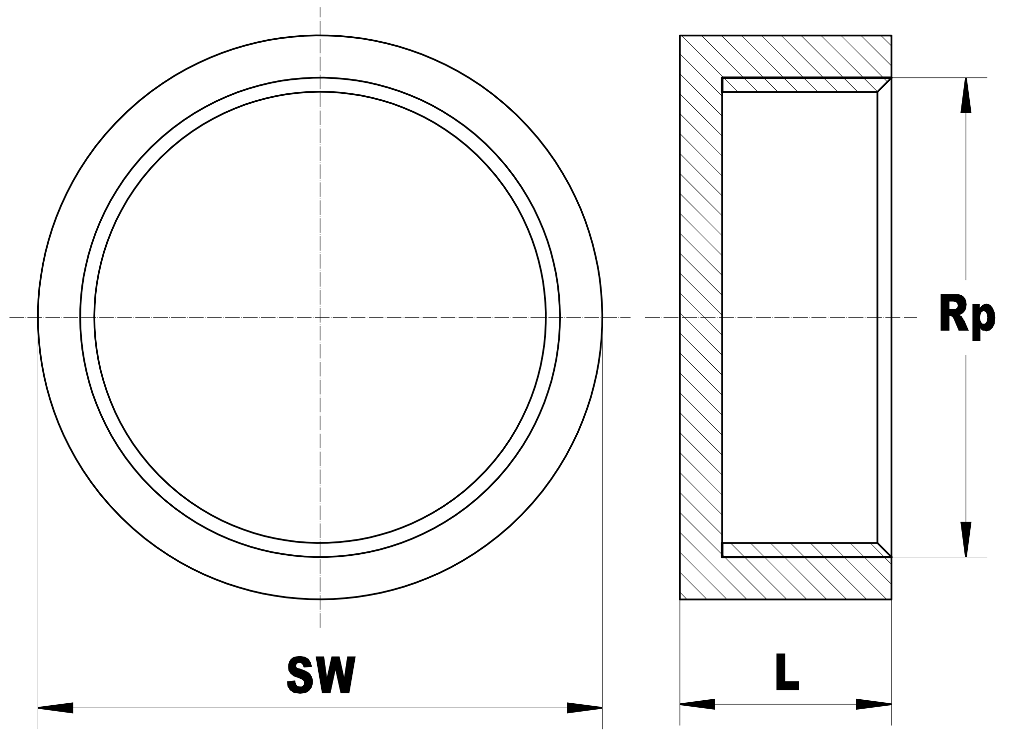 0202029 Rundkappe Rp 2" V4A Abmessung
