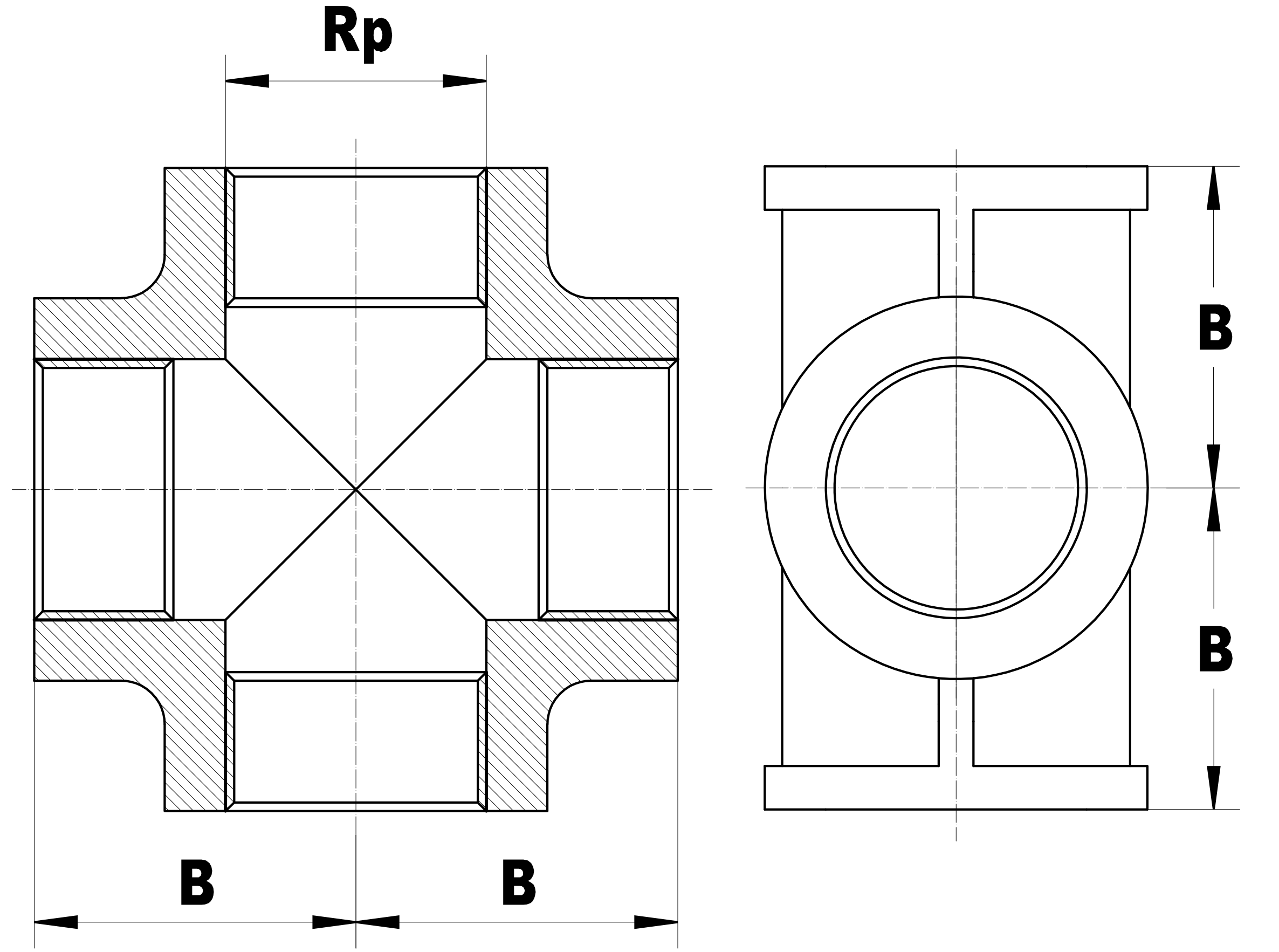0142007 Kreuzstück Rp 1 1/4" V4A Abmessung