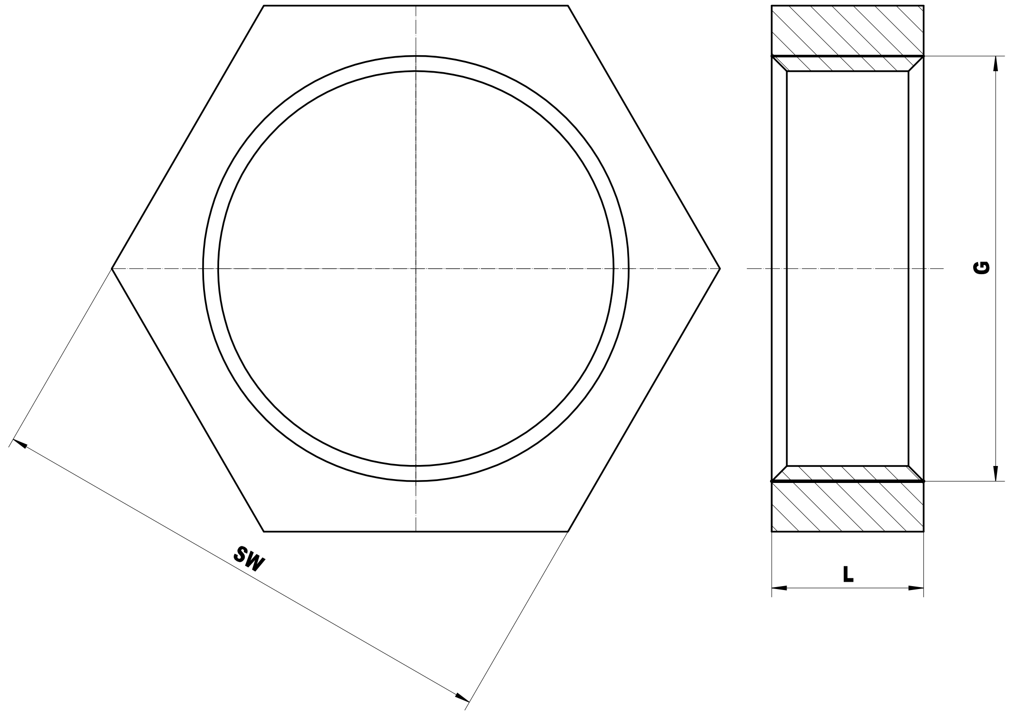 0182025 Rohrmutter DIN 431 G 3/4" V4A Abmessung