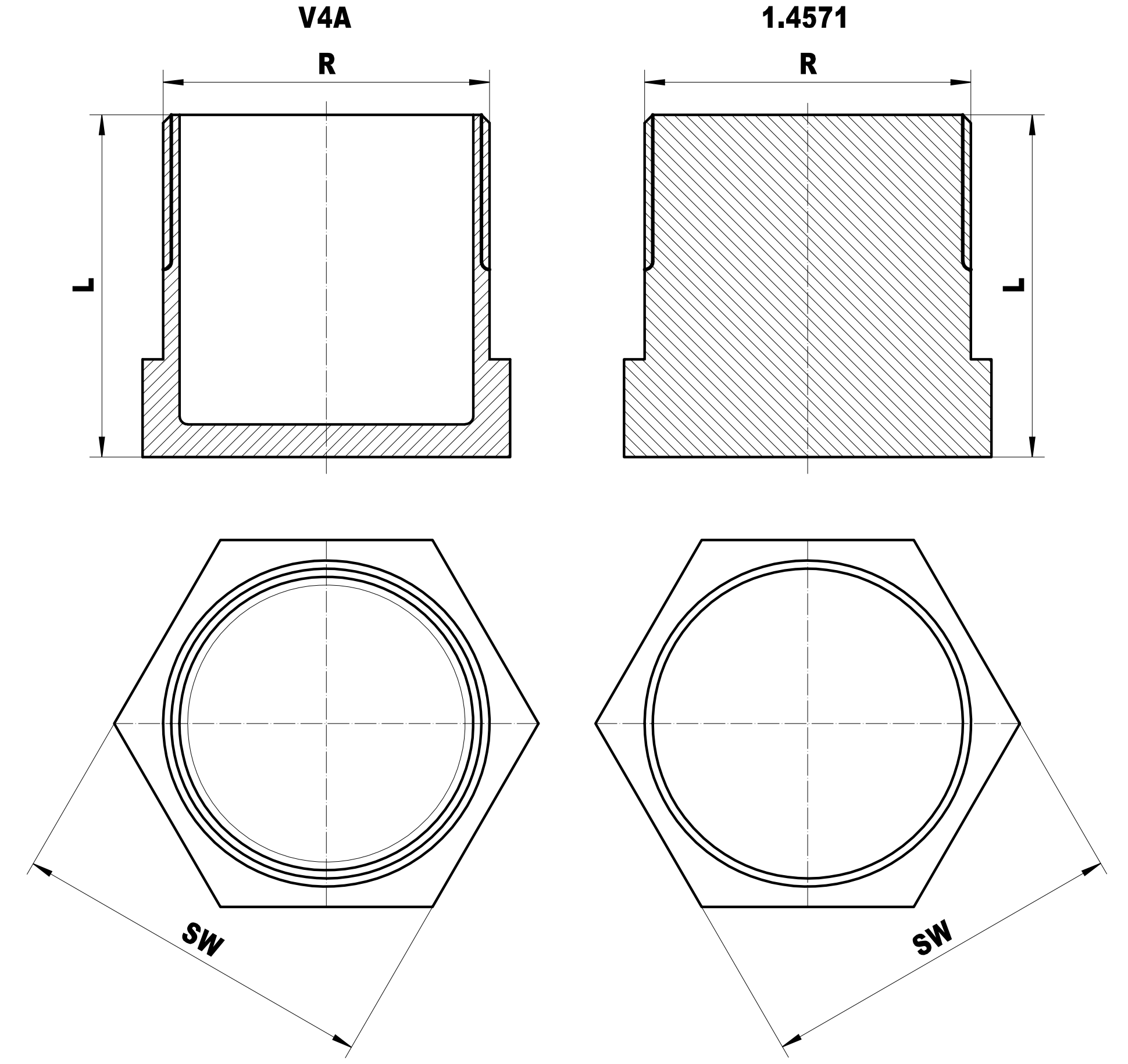0072032 6-kt. Stopfen R 4" V4A Abmessung